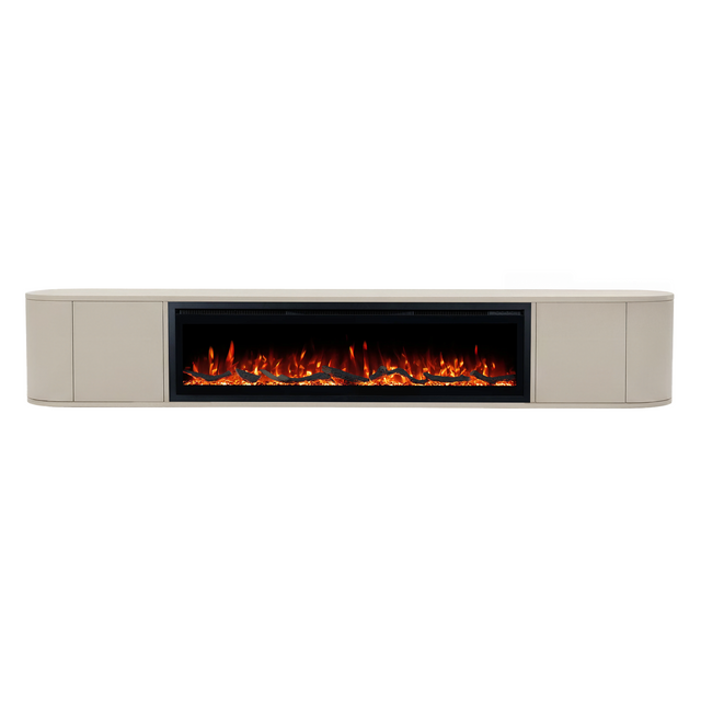 - TV-meubel met haard in het midden, standaard inbegrepen