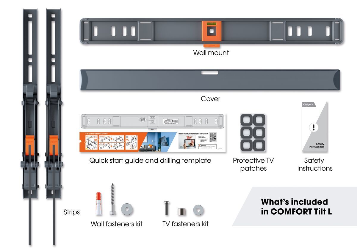 De Vogel's comfort 3615 is een kantelbare muurbeugel voor tv's van 40 tot 77 inch. Met deze tv-beugel zorg je ervoor dat je jouw tv gemakkelijk tot 20 graden kantelt om zo de beste kijkhoek te creëren. De muurbeugel is geschikt voor een gewicht tot maximaal 35 kilo en is uitgerust met het ClickLoc-veiligheidssysteem. Hiermee vergrendel je de tv veilig aan de beugel. Het ophangen en installeren is eenvoudig gedaan met alle meegeleverde onderdelen, de ingebouwde waterpas en de Quick Installation Guide. Met de handige DrillRight AR-app van Vogel's teken je gemakkelijk het eerste boorgat af. De Vogel's comfort 3615 is TÜV-gecertificeerd en getest tot zelfs 3 keer het maximale gewicht. Dankzij deze certificatie voldoet de beugel aan de hoogste veiligheidseisen.