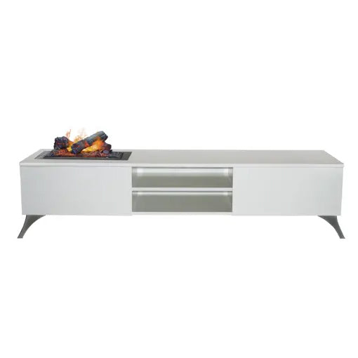 Ce meuble TV est fourni avec une cheminée électrique encastrée.