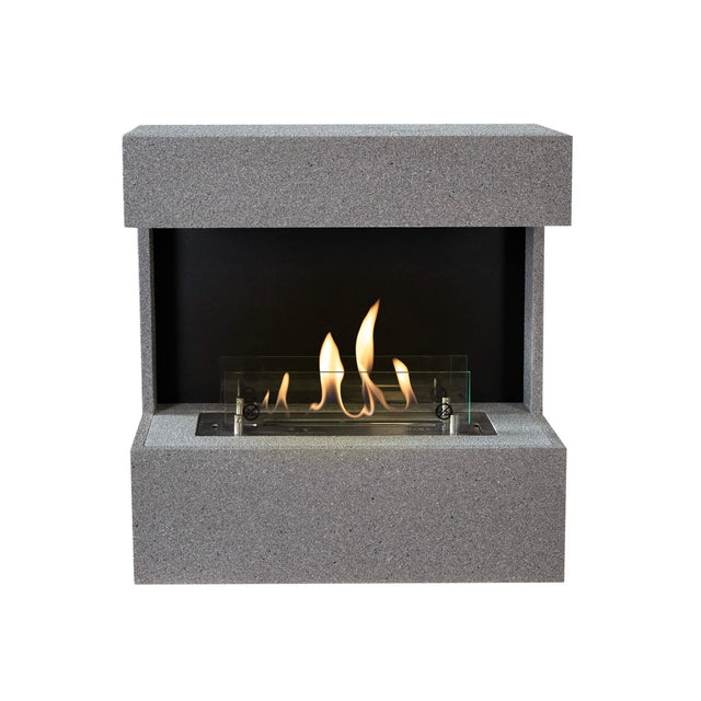 Le Nova est doté d'un panneau noir en guise de paroi arrière, créant une profondeur supplémentaire au feu. Son design robuste s'inspire du béton. Ce foyer mural aspect béton est fabriqué en matériau composite, léger et imperméable.