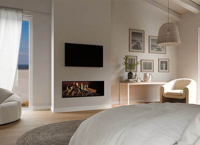 La technologie unique Evolve Flame, qui reproduit de véritables images de feu de bois, associée à un lit de braises décoré de copeaux de bois, crée une expérience de feu de bois très réaliste. Grâce à son élément chauffant de 1 à 2 kW, le foyer dispose également d'une fonction chauffage. Ses dimensions basses et larges le rendent idéal pour les murs de cinéma populaires. Le DRU Virtuo Evolve apportera une touche d'élégance à votre intérieur.