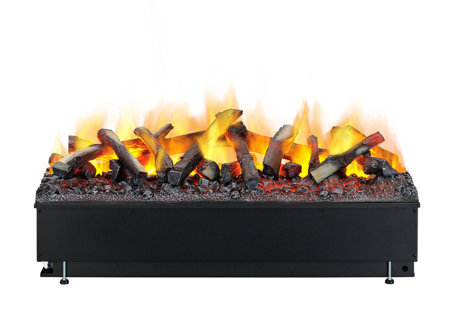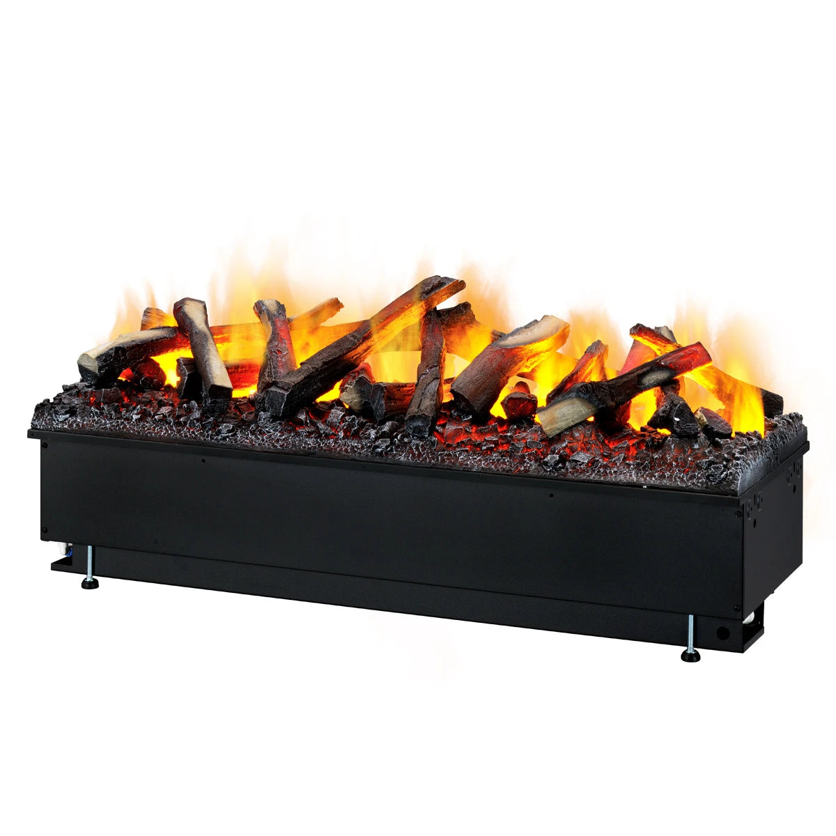 La technologie Opti-myst® est la cassette, ou source, de ce foyer. Ce système fonctionne à l'électricité et à l'eau et produit une flamme tridimensionnelle avec un effet de fumée. Un réservoir d'eau, un éclairage (LED ou halogène), la chaleur et un évaporateur créent des flammes identiques à celles d'un vrai feu. Un réservoir d'eau plein permet de faire du feu pendant 8 à 10 heures. La fine vapeur d'eau dégagée contribue également à l'humidité de la maison. Certaines cassettes Opti-myst®, en plus des options existantes, offrent également la possibilité de raccorder le réservoir à un raccordement d'eau permanent pour une flamme continue.